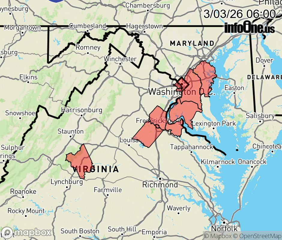 Canceled 3/3/26 9:00 AM Special Weather Statement issued March 3 at 5:59AM EST by NWS Baltimore MD/Washington DC * WHAT... Areas of freezing rain. A light glaze of ice is possible on mainly elevated surfaces as air temperatures remain near the freezing mark in some locations, while roadway temperatures are above freezing. * WHERE... Locations from Washington DC south and east, as well as Nelson County VA. * WHEN... Through 9 AM. Temperatures will rise above freezing by mid morning. * IMPACTS... Elevated surfaces such as decks, stairs, and bridges may be icy in some locations. ![]() |