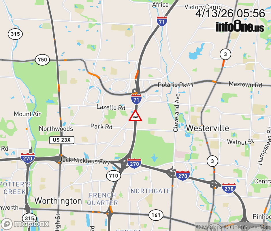 Expect lane closures on I-71 South beyond Gemini Place To Polaris Pkwy, due to a crash. ![]() |