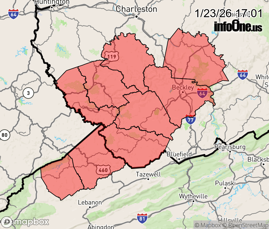 Canceled 1/23/26 10:04 PM Winter Storm Warning issued January 23 at 5:00PM EST until January 26 at 7:00AM EST by NWS Charleston WV * WHAT... Heavy mixed precipitation expected. Total snow and sleet accumulations between 3 and 8 inches and ice accumulations between two tenths and one half of an inch. * WHERE... Portions of southwest Virginia and southeast and southern West Virginia. * WHEN... From 7 AM Saturday to 7 AM EST Monday. * IMPACTS... Power outages and tree damage are likely due to the ice. Travel could be nearly impossible. The hazardous conditions could impact the Monday morning commute. ![]() |