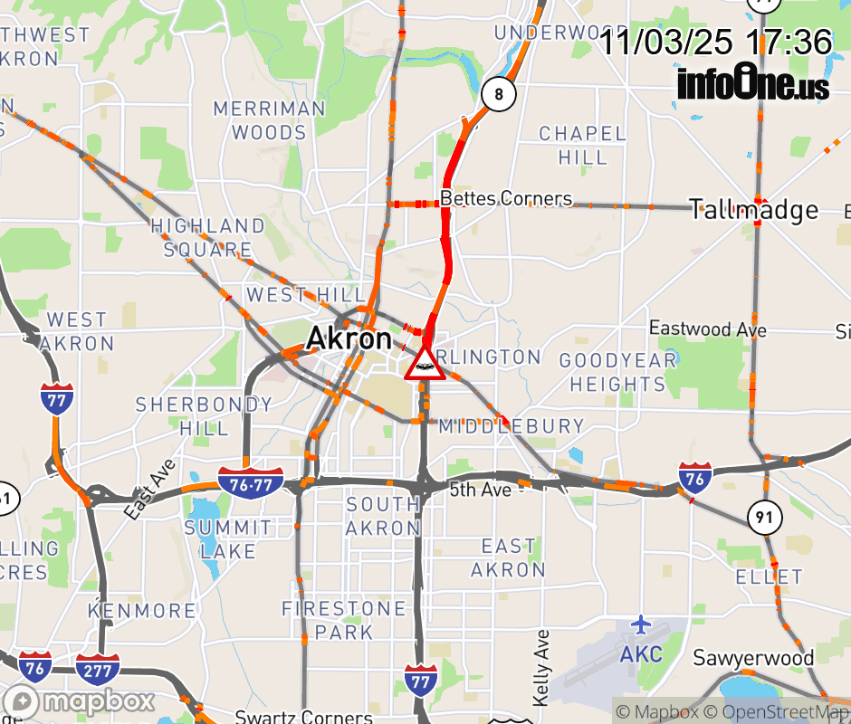 The right shoulder is blocked on SR-8 South at Buchtel Ave/Carroll St/Exchange St, due to a crash. Updated: Mon 11/3/25 5:36 PM EST ![]() Updated: Mon 11/3/25 5:36 PM EST |