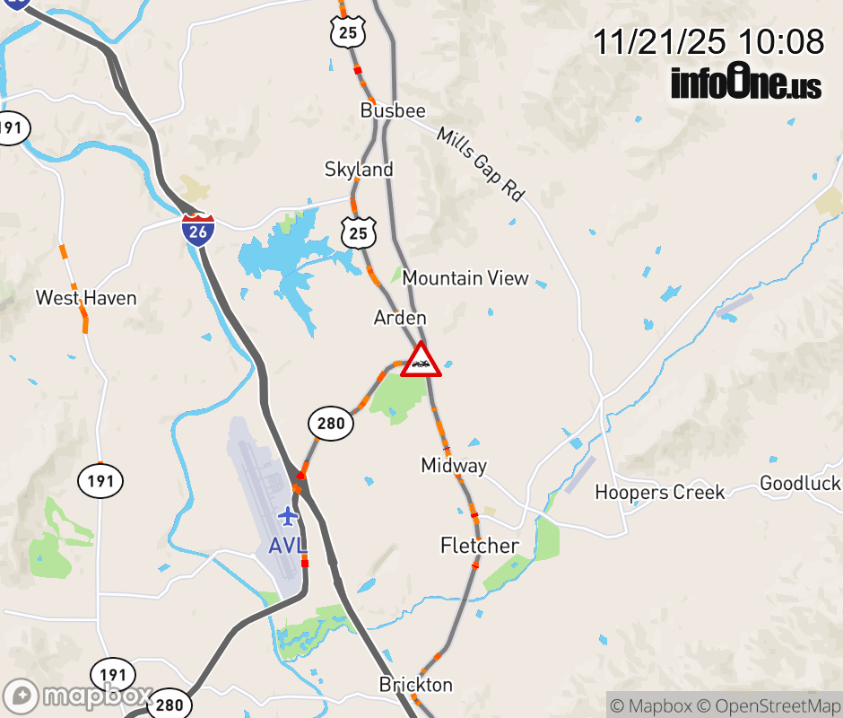 The right lane is closed near US 25, Hendersonville Road. ![]() |