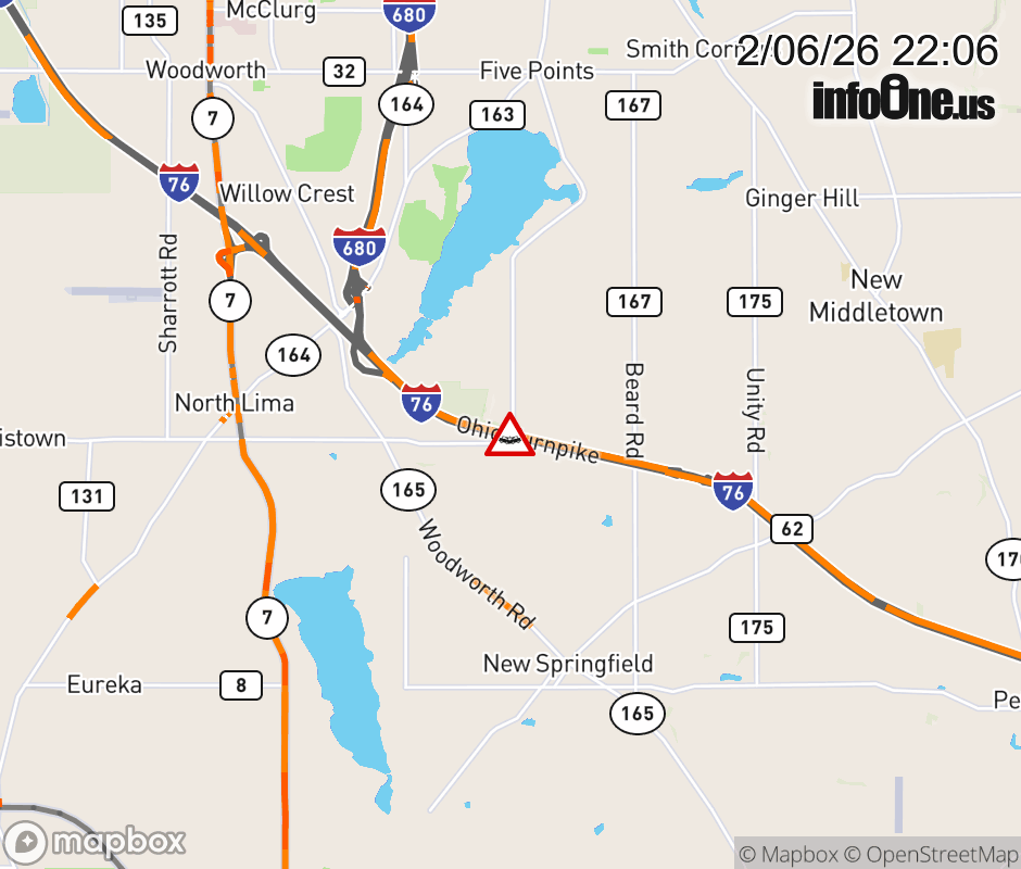 Expect lane closures on I-76 West (Ohio Turnpike) beyond State of Pennsylvania, due to a crash. ![]() |