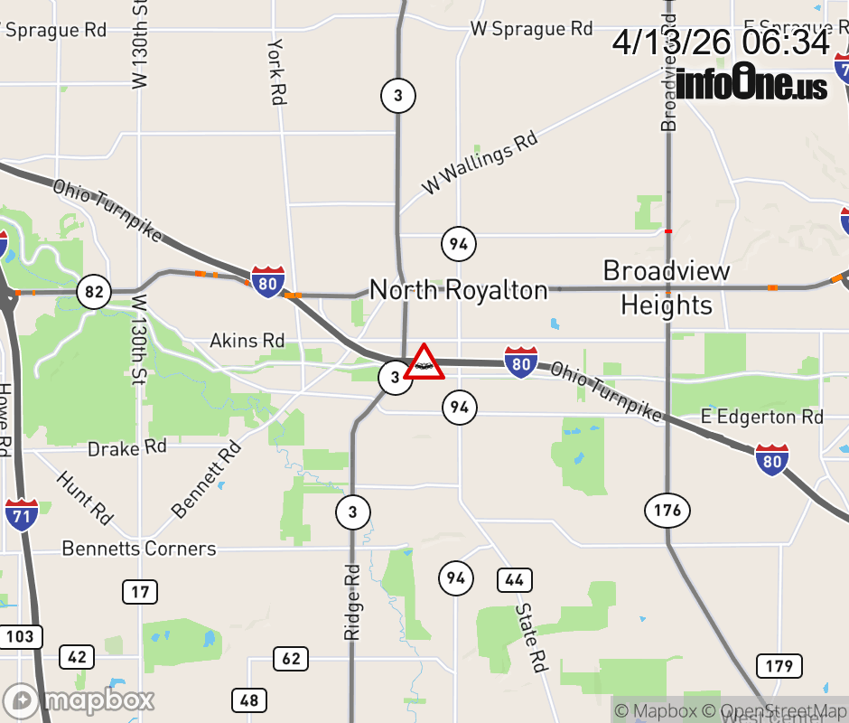 Canceled 4/13/26 7:58 AM Location: I-80 West (Ohio Turnpike) at MM 167, OH Accident.