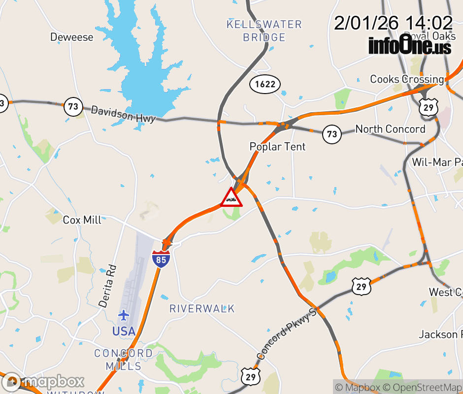 The center lane is closed at Exit 54 (George W Liles Parkway). ![]() |