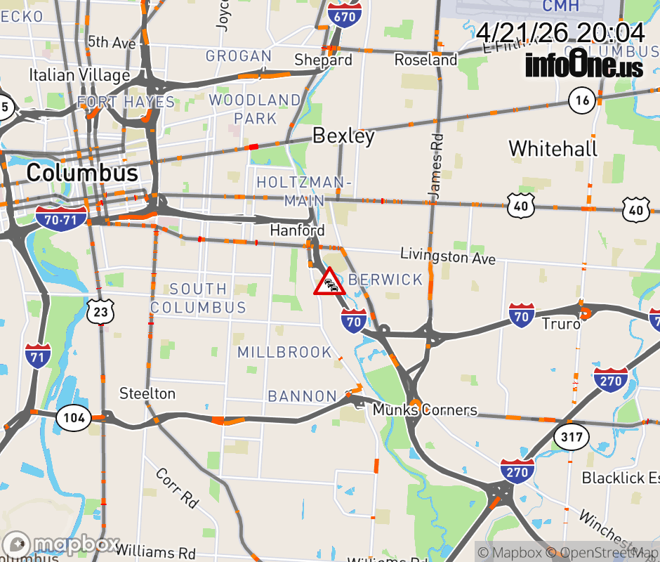 The right lane is blocked on I-70 West beyond US-33, due to repairs/maintenance. ![]() |