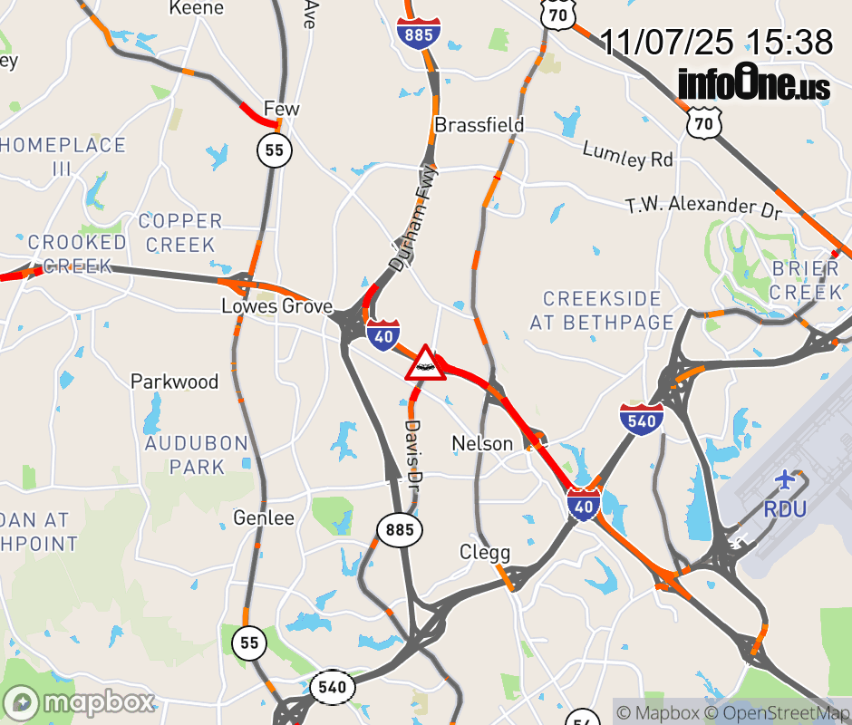 The left shoulder is closed past Exit 280 (Davis Dr). Updated: Fri 11/7/25 3:38 PM EST ![]() Updated: Fri 11/7/25 3:38 PM EST |