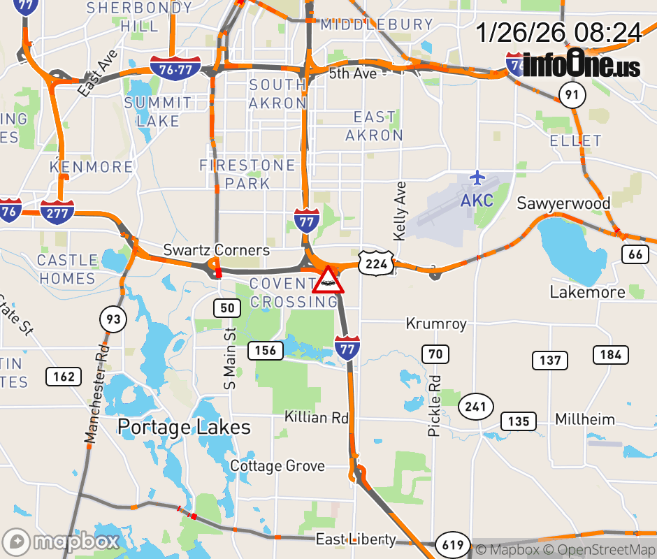 The right lane is blocked on I-77 South at US-224 East, due to a crash. ![]() |