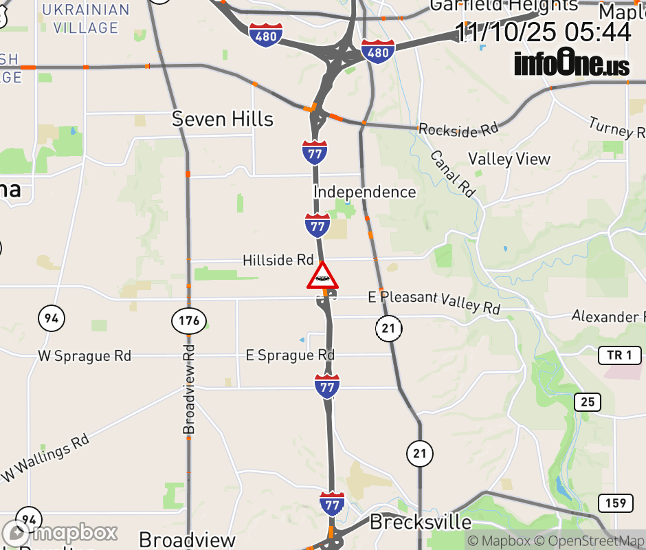 The right lane is blocked on I-77 South beyond Rockside Rd, due to a crash. Updated: Mon 11/10/25 5:44 AM EST ![]() Updated: Mon 11/10/25 5:44 AM EST |