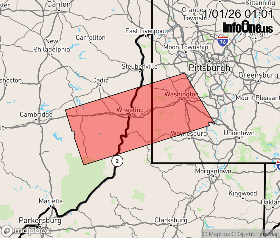 Canceled 1/1/26 1:17 AM Snow Squall Warning issued January 1 at 1:00AM EST until January 1 at 2:00AM EST by NWS Pittsburgh PA The National Weather Service in Pittsburgh has issued a * Snow Squall Warning for... Belmont County in east central Ohio... East Central Guernsey County in east central Ohio... Southeastern Harrison County in east central Ohio... Southeastern Jefferson OH County in east central Ohio... Northeastern Monroe County in east central Ohio... Northwestern Greene County in southwestern Pennsylvania... Washington County in southwestern Pennsylvania... Brooke County in northern West Virginia... Marshall County in northern West Virginia... Ohio County in northern West Virginia... * Until 200 AM EST. * At 100 AM EST, a dangerous snow squall was located along a line from near McGovern to 6 miles northwest of Barnesville, or along a line from near Canonsburg to 6 miles northwest of Barnesville, moving south at 20 mph. HAZARD...Intense bursts of heavy snow and gusty winds leading to blowing snow and rapidly falling visibility. Wind gusts up to 35 mph. SOURCE...Radar indicated. IMPACT...Travel will become difficult and potentially dangerous within minutes. * Locations impacted include... Wheeling, Washington, Moundsville, Canonsburg, Martins Ferry, St. Clairsville, Bellaire, Barnesville, Warwood, Wellsburg, Bethlehem, Woodsfield, West Liberty, Triadelphia, Avella, Clearview, Valley Grove, Cecil-Bishop, Shadyside and Wolfdale. This includes the following highways... Interstate 70 in West Virginia between mile markers 0 and 14. Interstate 70 in Pennsylvania between mile markers 0 and 28. Interstate 70 in Ohio between mile markers 195 and 225. Interstate 79 in Pennsylvania between mile markers 18 and 48. ![]() |
