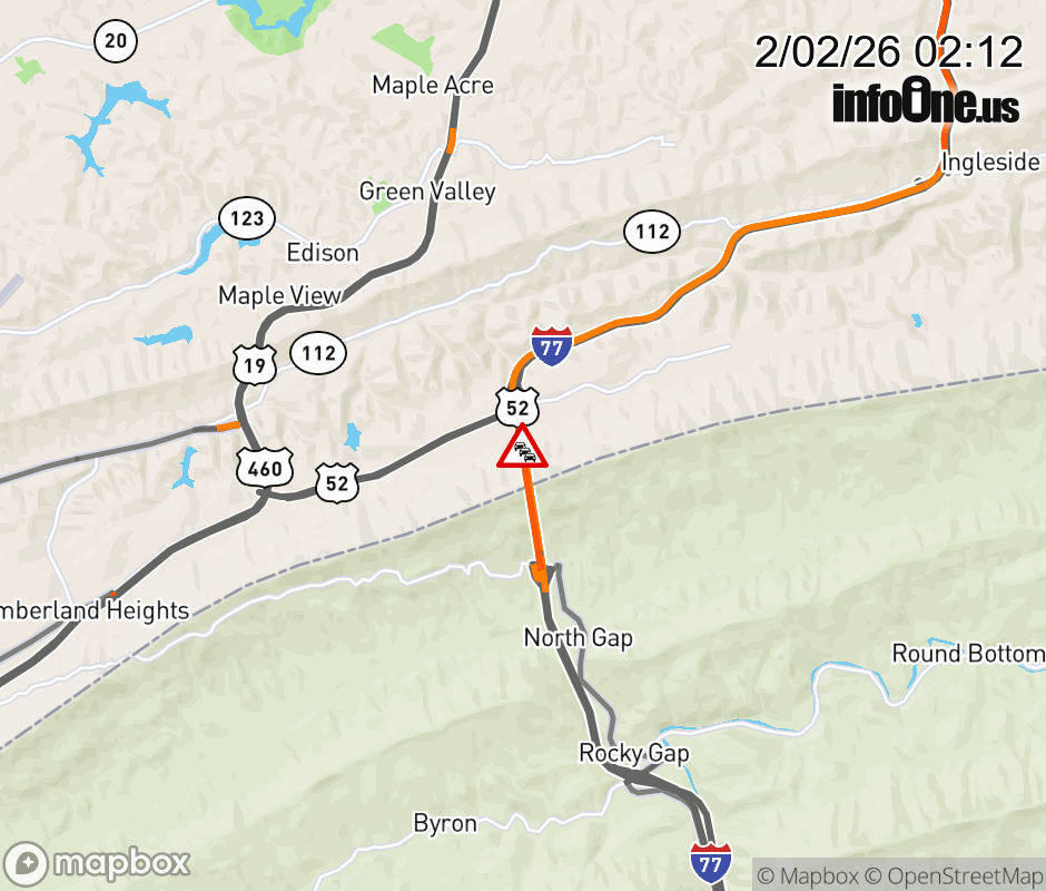 On I-77 in the County of Bland, at East River Mountain Tunnel North, motorists can expect delays due to a bridge/tunnel stoppage. All north lanes are closed. ![]() |