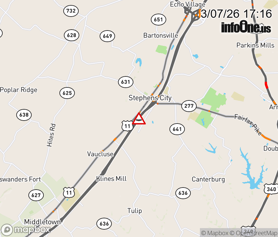 On I-81 at mile marker 306.4 in the County of Frederick, motorists can expect delays due to a vehicle crash. The north right shoulder is closed. Updated: Sat 3/7/26 5:16 PM EST ![]() Updated: Sat 3/7/26 5:16 PM EST |