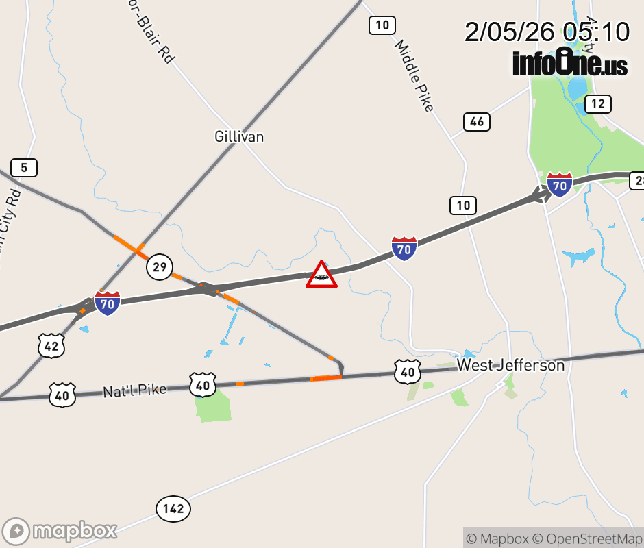 Shoulders are blocked on I-70 East beyond SR-29/West Jefferson, due to a crash. ![]() |