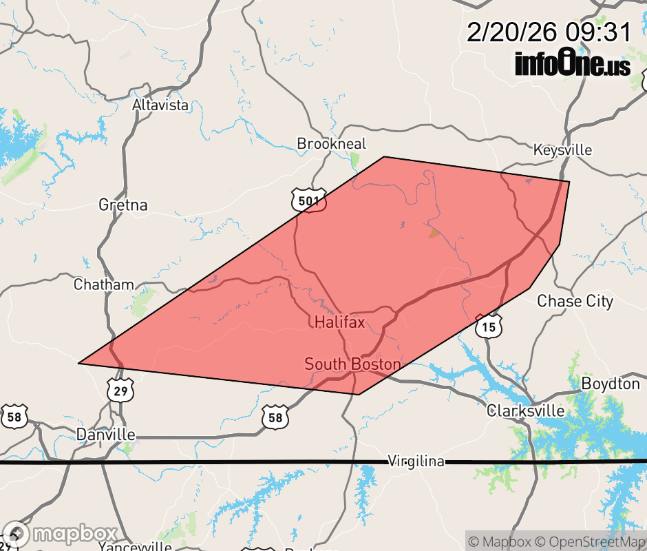 Canceled 2/20/26 10:00 AM Special Weather Statement issued February 20 at 9:29AM EST by NWS Blacksburg VA At 929 AM EST, Doppler radar was tracking gusty showers along a line extending from near Aspen to Blairs. Movement was east at 40 mph. HAZARD...Wind gusts up to 40 mph. SOURCE...Radar indicated. IMPACT...Gusty winds could knock down tree limbs and blow around unsecured objects. Locations impacted include... South Boston... Halifax... Clover... Ingram... Nathalie... Redoak... and Drakes Branch. ![]() |