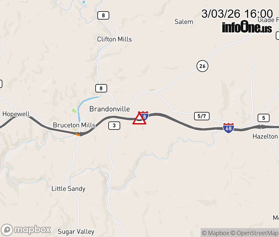 Canceled 3/3/26 6:40 PM Location: I-68 at MM 25.0, WV Accident.