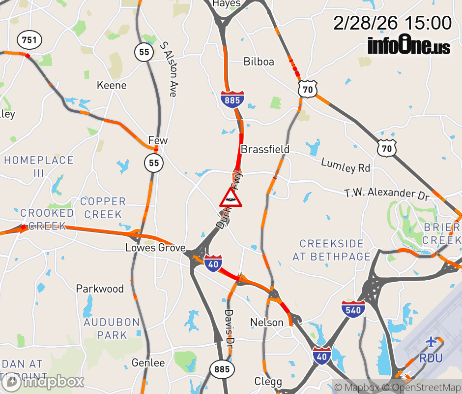 The left shoulder is closed before Exit 6 (E Cornwallis Rd). Updated: Sat 2/28/26 3:00 PM EST ![]() Updated: Sat 2/28/26 3:00 PM EST |