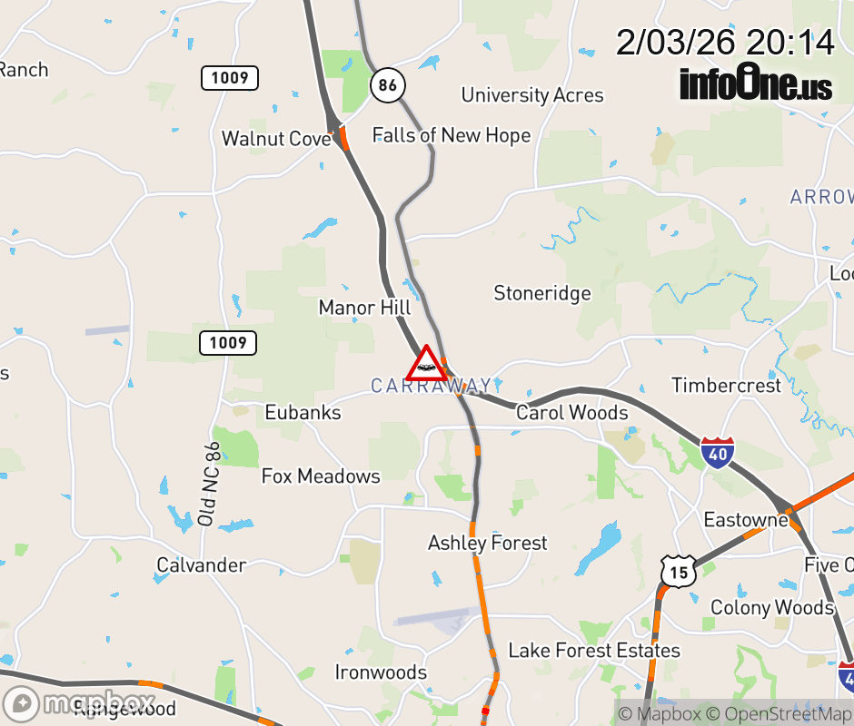 The right lane is closed past Exit 266 (NC-86). ![]() |