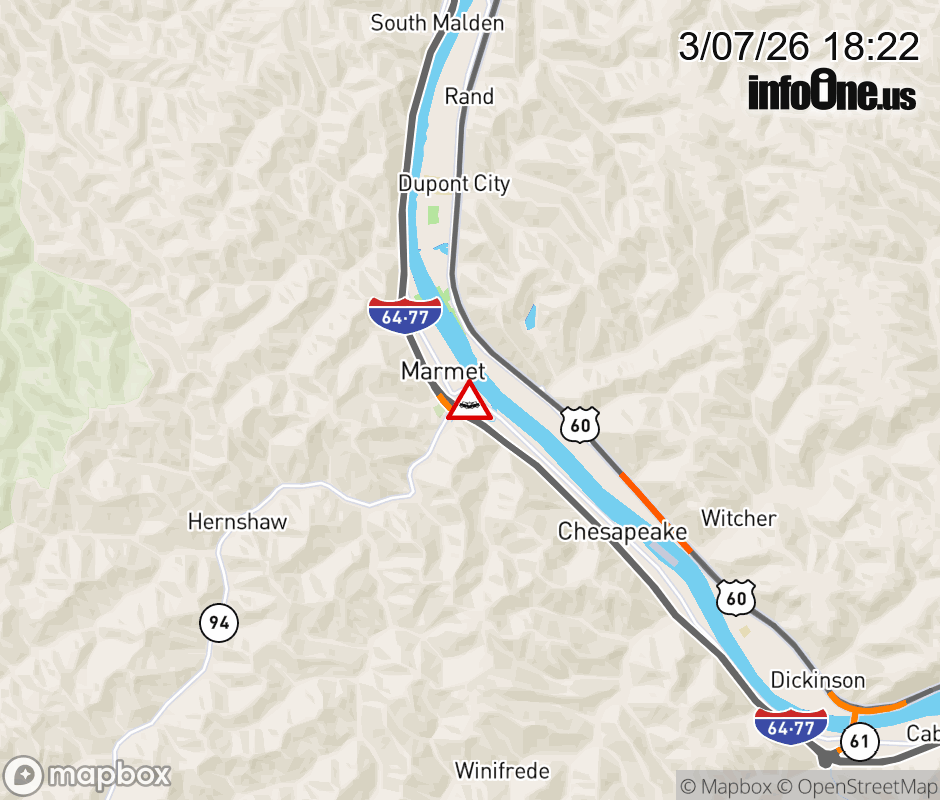 Vehicle Crash on WV-61 (10400 BLK of MacCorkle Ave SE) in Marmet. ![]() |