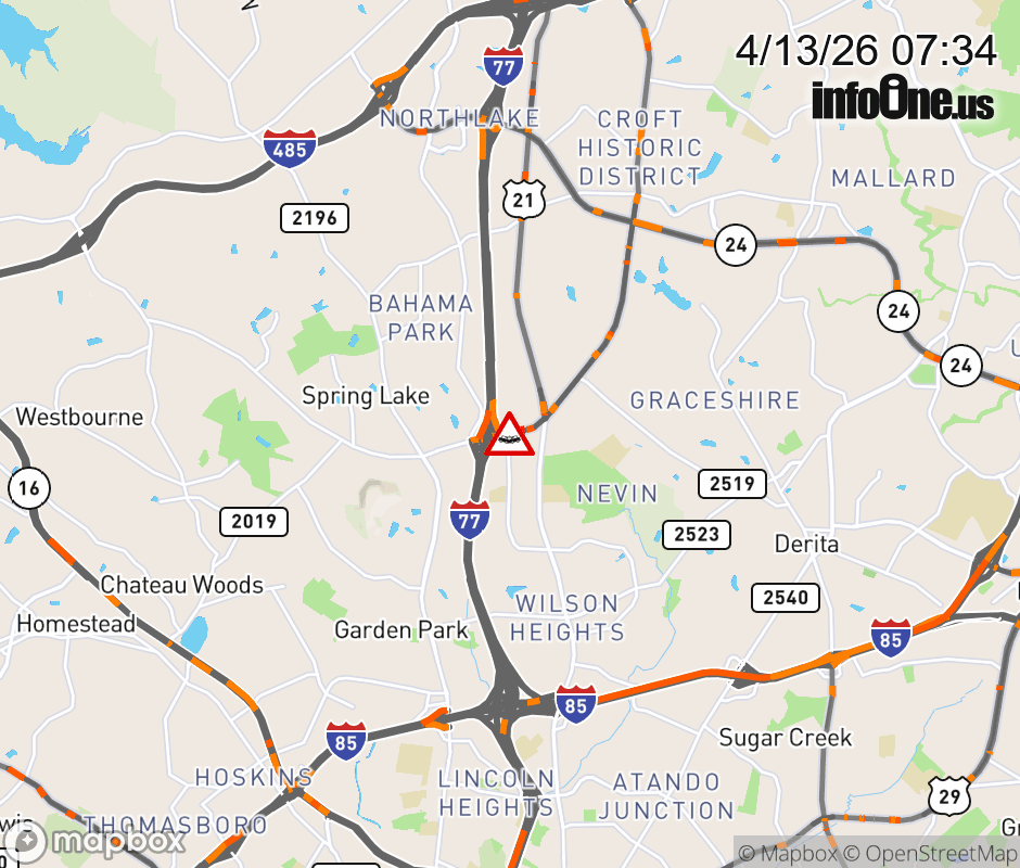 The left lane is closed prior to I-77 North. ![]() |