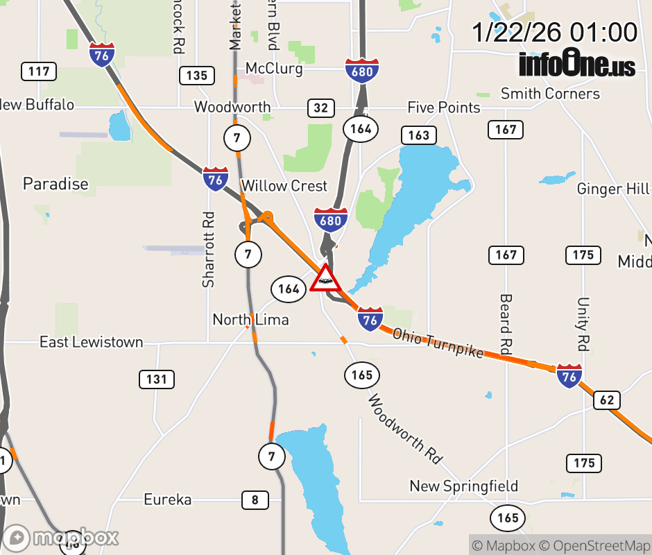 Expect lane closures on I-76 West (Ohio Turnpike) beyond I-680 North, due to a crash. ![]() |