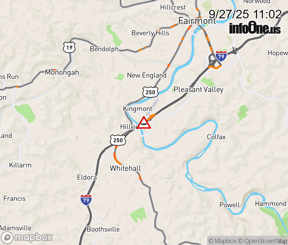 In Marion County there is a Vehicle Crash on I-79S at Mile Marker 133. ![]() |
