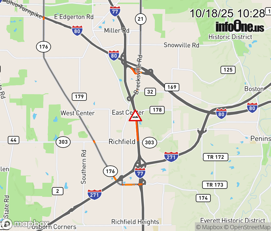 The right shoulder is blocked on I-77 South beyond SR-21/Brecksville Rd, due to a disabled vehicle. Updated: Sat 10/18/25 10:28 AM EDT ![]() |