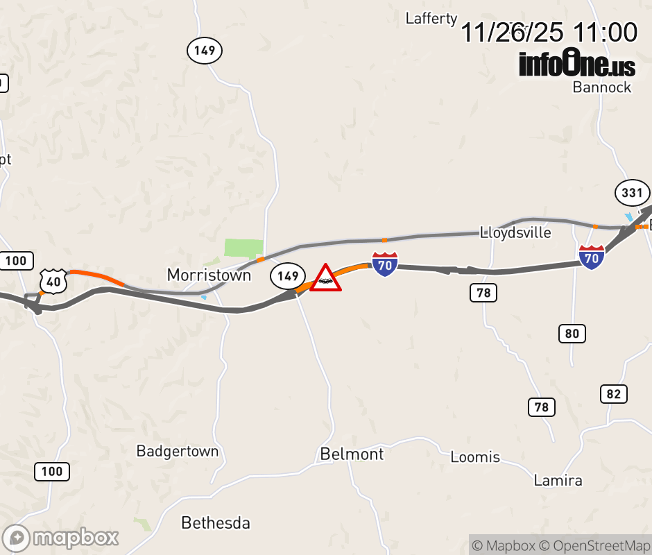 The right shoulder is blocked on I-70 West beyond SR-331, due to a crash. ![]() |