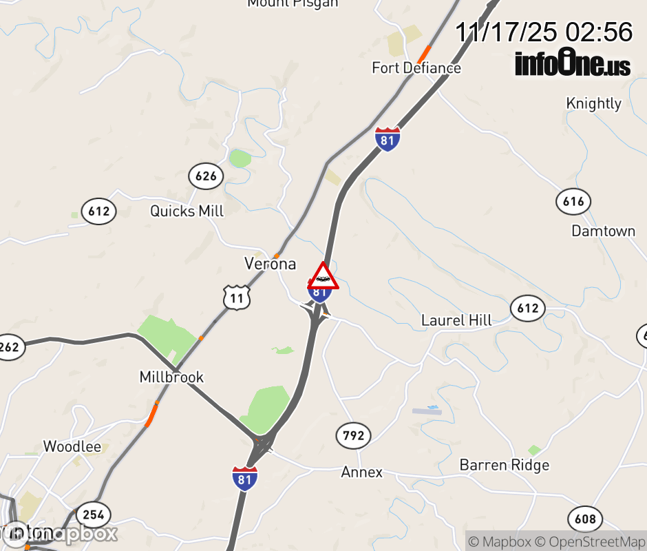 On I-81 South at mile marker 228 in the County of Augusta, motorists can expect delays due to a vehicle crash. Updated: Mon 11/17/25 2:56 AM EST ![]() Updated: Mon 11/17/25 2:56 AM EST |