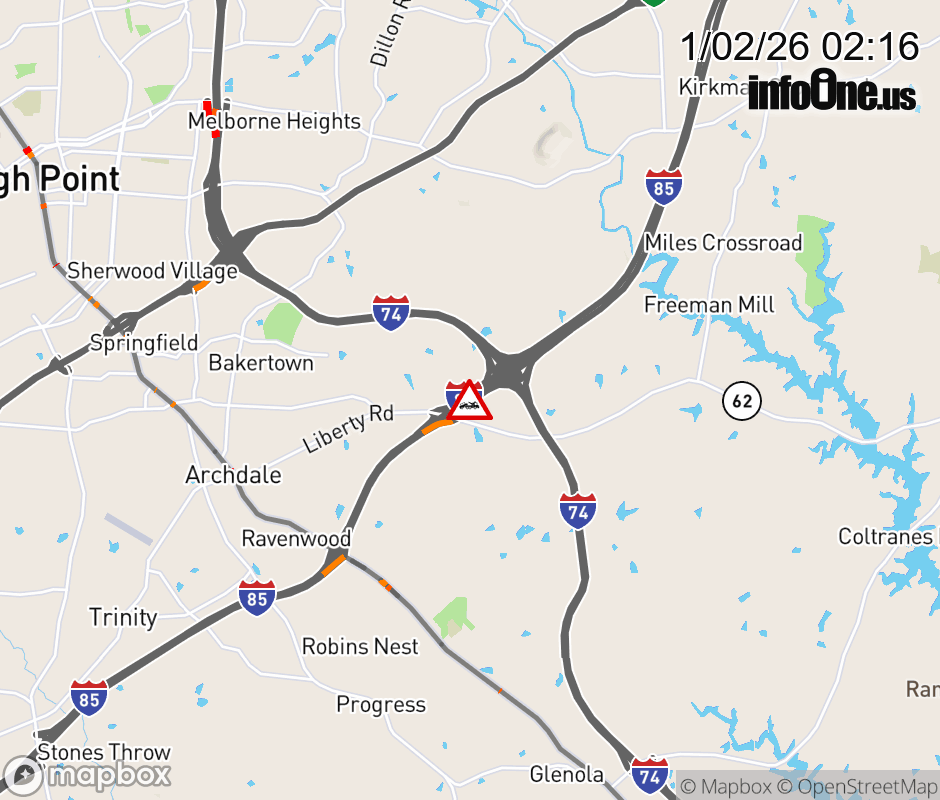 A lane is closed near Exit 113 ( NC 62). ![]() |