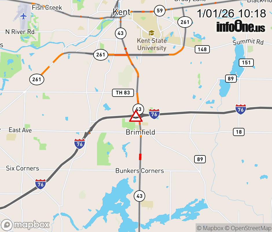 The left lane is blocked on I-76 East at SR-43, due to a crash. ![]() |