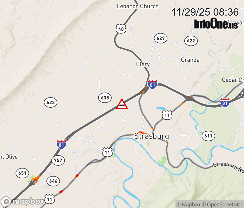 On I-81 North at mile marker 295.6 in the County of Shenandoah, motorists can expect delays due to a vehicle crash. Updated: Sat 11/29/25 8:36 AM EST ![]() Updated: Sat 11/29/25 8:36 AM EST |