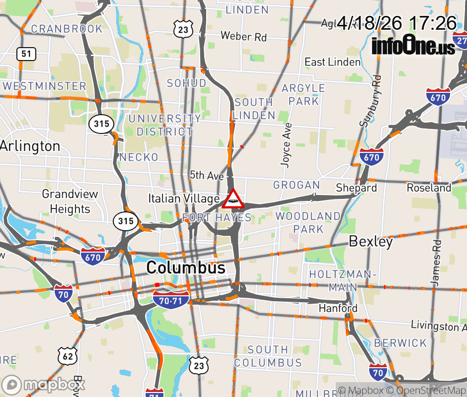 The right lane is blocked on I-71 North beyond I-670 West, due to a crash. ![]() |