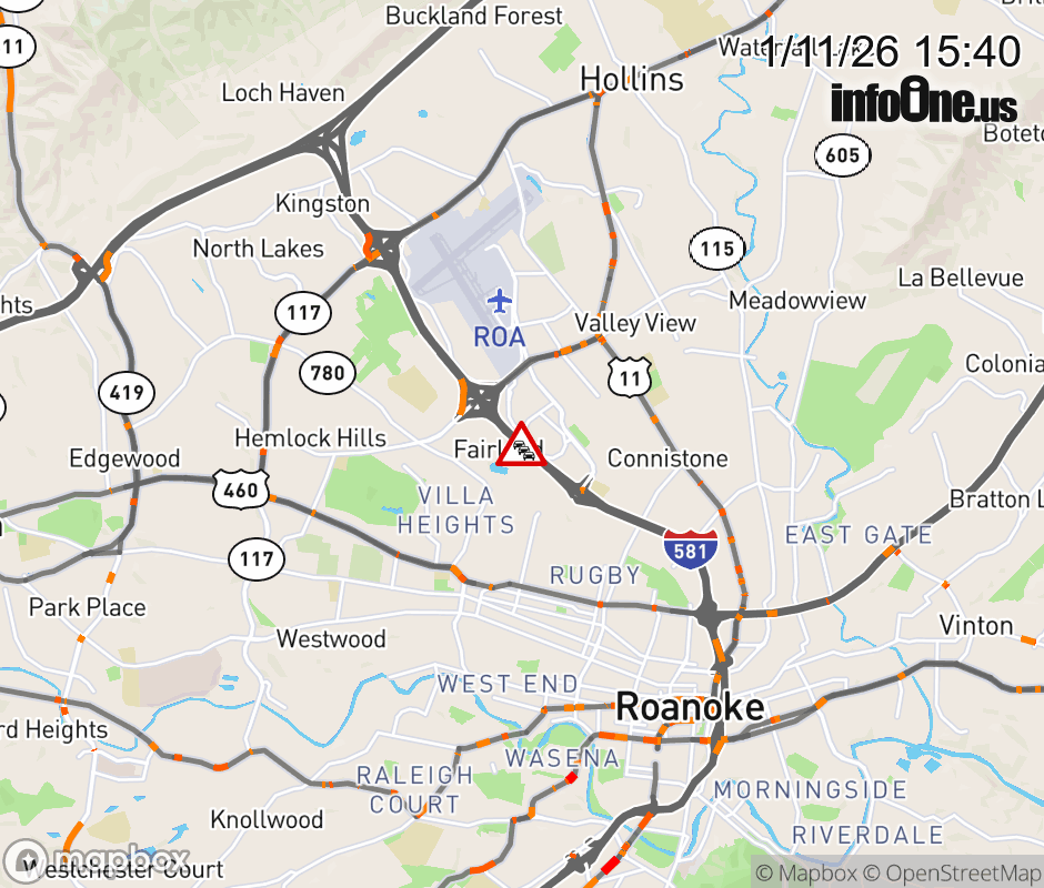 On I-581 at mile marker 3.5 in the County of Roanoke, motorists can expect delays due to an incident. The north right lane and right shoulder are closed. The north entrance ramp narrows. ![]() |