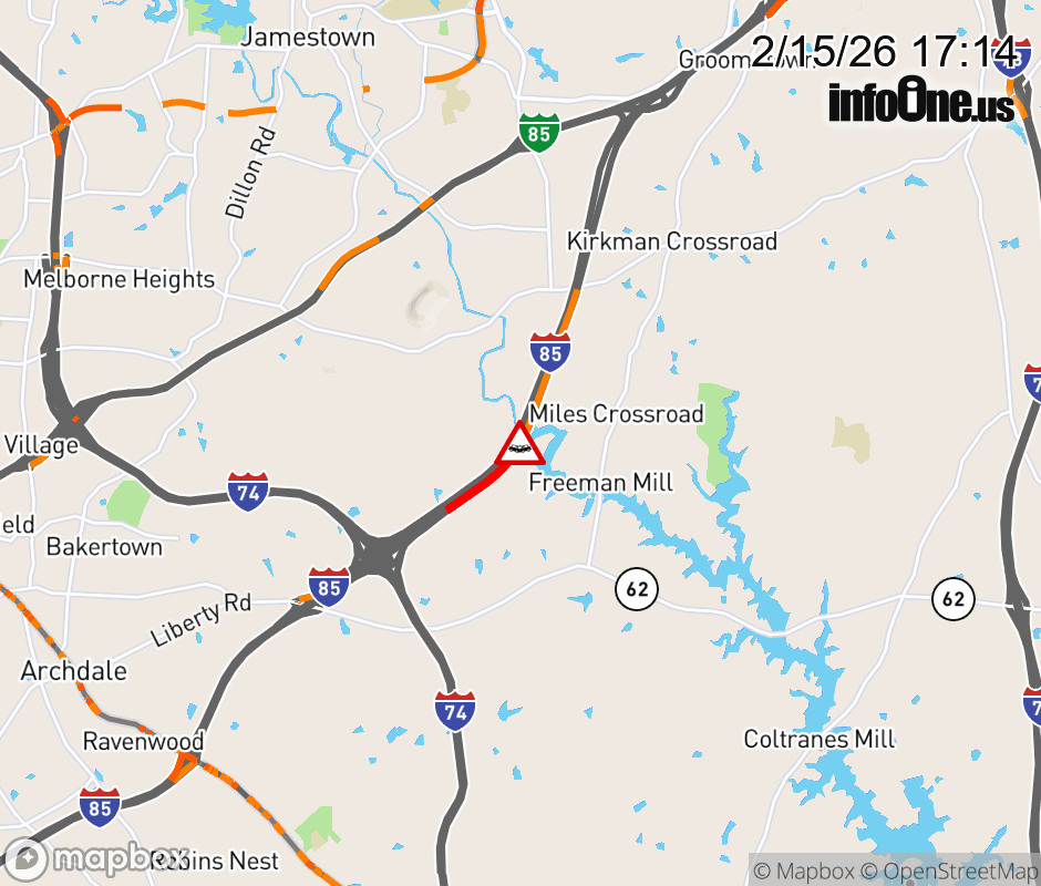 Canceled 2/15/26 5:40 PM Location: I-85N at MM 115, NC Vehicle Crash.