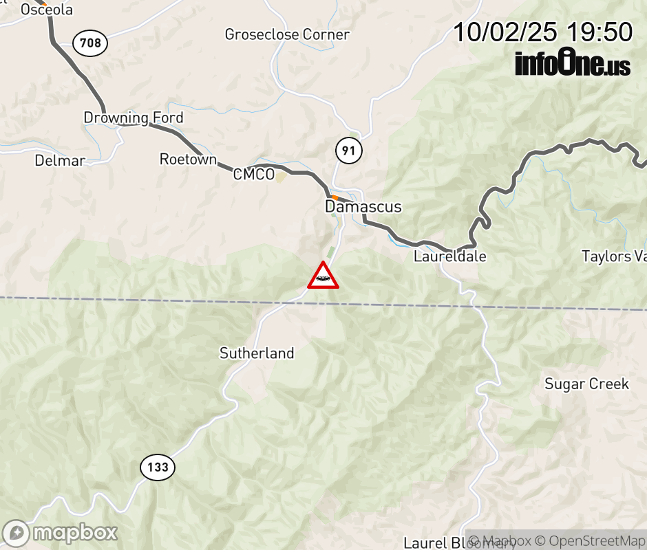 On Rt. 716 North in the County of Washington, in the vicinity of County/City/Town Line: DAMASCUS, motorists can expect delays due to a vehicle crash. Lane closures exist. ![]() |