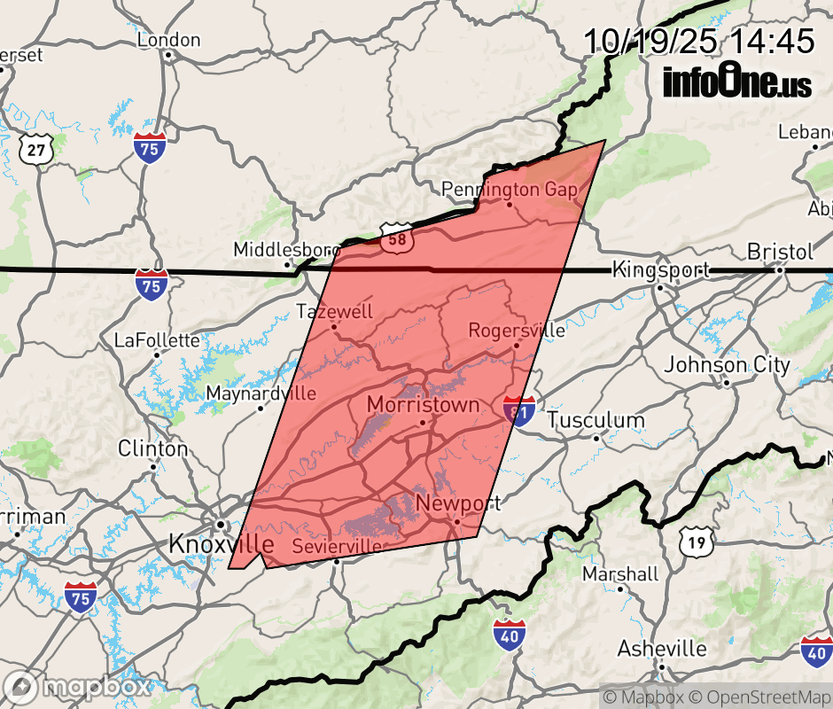 Canceled 10/19/25 3:30 PM Special Weather Statement issued October 19 at 2:44PM EDT by NWS Morristown TN At 244 PM EDT, Doppler radar was tracking strong thunderstorms along a line extending from near Cubage to 10 miles east of Knoxville. Movement was east at 45 mph. HAZARD...Wind gusts up to 50 mph. SOURCE...Radar indicated. IMPACT...Gusty winds could knock down tree limbs and blow around unsecured objects. Locations impacted include... Knoxville, Morristown, Sevierville, Jefferson City, Newport, Rogersville, Dandridge, Sneedville, Rutledge, and Jonesville. ![]() |