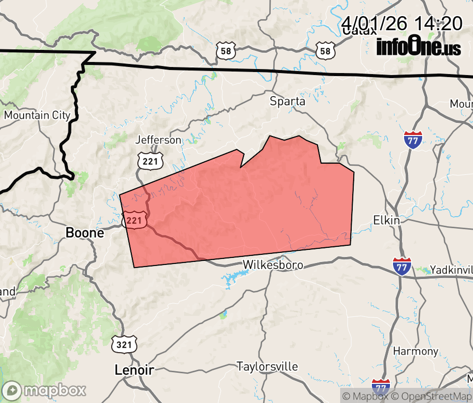 Canceled 4/1/26 2:51 PM Severe Thunderstorm Warning issued April 1 at 2:19PM EDT until April 1 at 3:15PM EDT by NWS Blacksburg VA SVRRNK The National Weather Service in BLACKSBURG has issued a * Severe Thunderstorm Warning for... Central Wilkes County in northwestern North Carolina... Southeastern Watauga County in northwestern North Carolina... Southeastern Ashe County in northwestern North Carolina... * Until 315 PM EDT. * At 218 PM EDT, a severe thunderstorm was located over Cascade Falls, or over Deep Gap, moving east at 15 mph. HAZARD...60 mph wind gusts and quarter size hail. SOURCE...Radar indicated. IMPACT...Hail damage to vehicles is expected. Expect wind damage to roofs, siding, and trees. * Locations impacted include... North Wilkesboro... Ronda... Traphill... Glendale Springs... Deep Gap... Mc Grady... and Wilbar. ![]() |