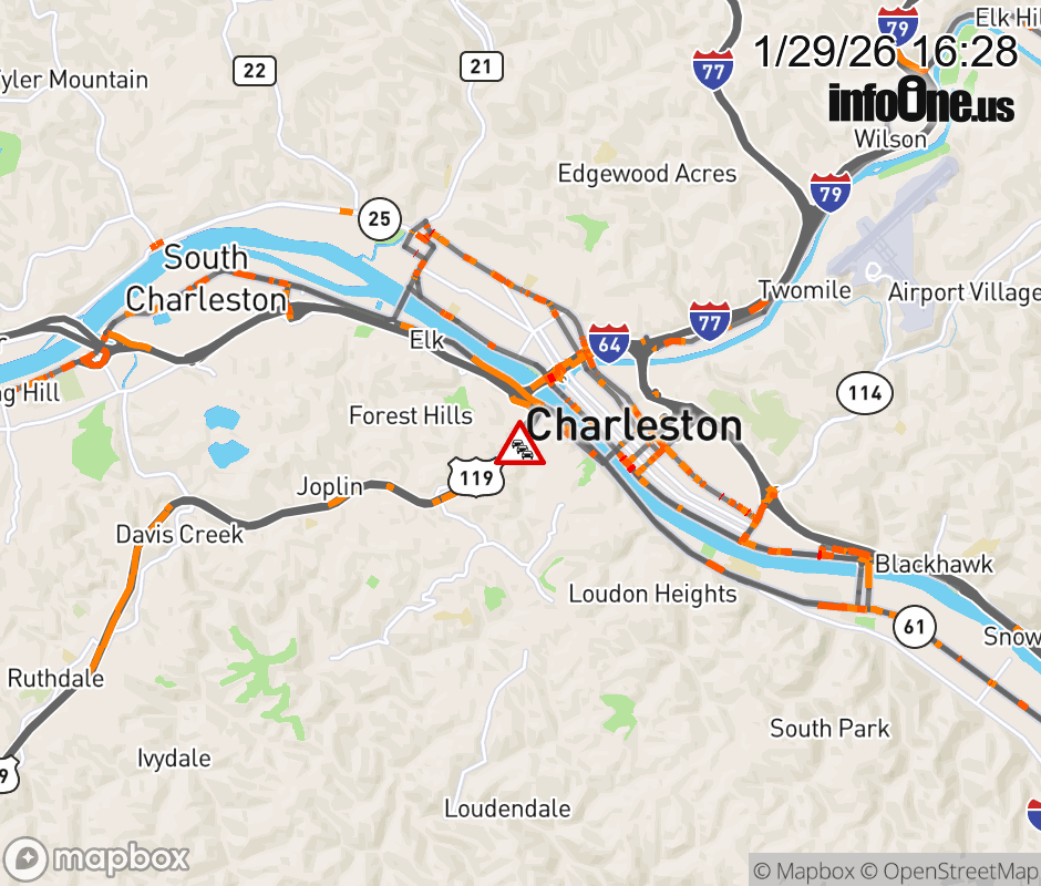 Congestion-Delay on US-119 (Corridor G South) & I-64 Interchange (Oakwood Exit) in Charleston . ![]() |
