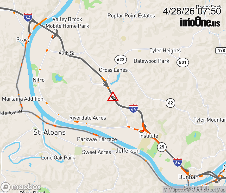 Congestion-Delay on I-64E at Mile Marker 48.0. Comments:Due to Vehicle Crash at Mile Marker 50.0. ![]() |