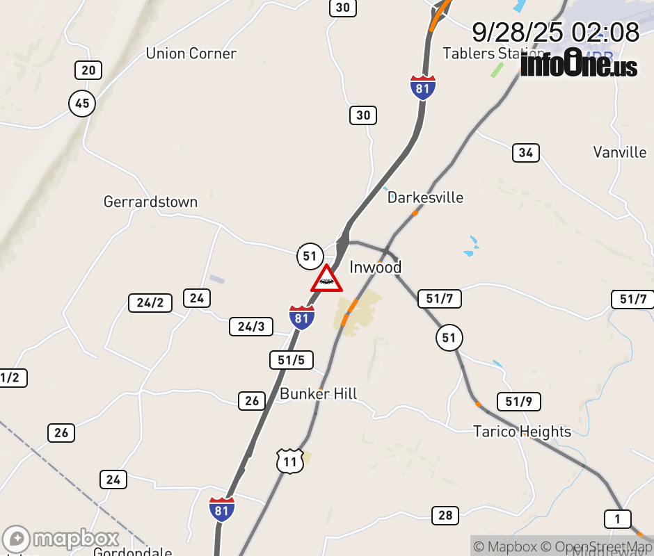 Canceled 9/28/25 4:02 AM Location: I-81 at MM 4.51, WV Accident.