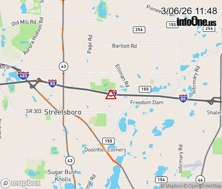 Expect lane closures on I-80 East (Ohio Turnpike) beyond I-480/SR-14, due to a crash. ![]() |