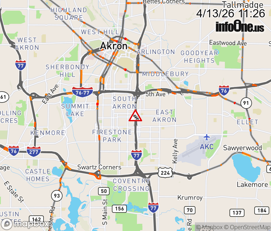 The right lane is blocked on I-77 South at Archwood Ave/Firestone Blvd, due to repairs/maintenance. ![]() |