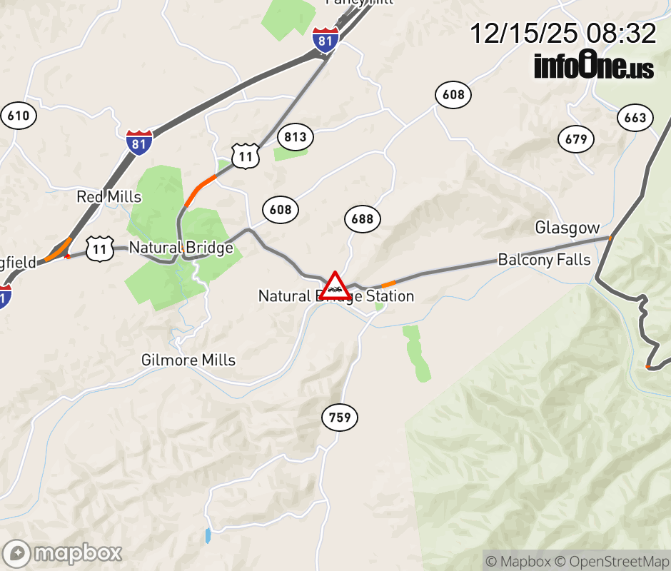 On Rt. 688 in the County of Rockbridge, in the vicinity of Wert Faulkner Hwy; Rt. 772N/S (Rockbridge County), motorists can expect delays due to a disabled tractor trailer. All north lanes are closed. All south lanes are closed. ![]() |