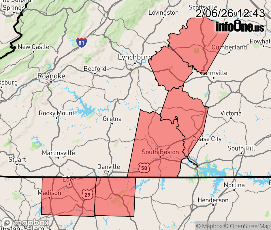 Canceled 2/6/26 12:55 PM Wind Advisory issued February 6 at 12:42PM EST until February 7 at 7:00PM EST by NWS Blacksburg VA * WHAT... Northwest winds 10 to 30 mph with gusts up to 50 mph expected. * WHERE... In North Carolina, Caswell and Rockingham Counties. In Virginia, Appomattox, Buckingham, Charlotte, and Halifax Counties. * WHEN... From 7 PM this evening to 7 PM EST Saturday. * IMPACTS... Gusty winds will blow around unsecured objects. Tree limbs could be blown down and a few power outages may result. ![]() |