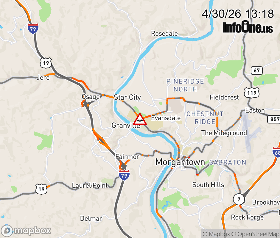 Vehicle Crash on WV-705 (Patteson Drive at Monongahela Blvd). ![]() |
