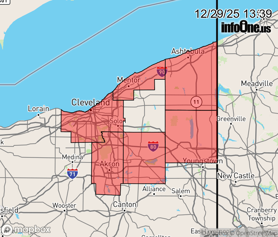 Canceled 12/29/25 7:09 PM Winter Weather Advisory issued December 29 at 1:38PM EST until December 30 at 1:00PM EST by NWS Cleveland OH * WHAT... Lake effect snow. Additional snow accumulations between 3 and 5 inches. Winds gusting as high as 60 mph. * WHERE... A portion of northeast Ohio. * WHEN... Until 1 PM EST Tuesday. * IMPACTS... Plan on slippery road conditions with slower travel likely. The hazardous conditions could impact the Monday evening and Tuesday morning commutes. Strong winds could cause tree damage. * ADDITIONAL DETAILS... The heaviest snow is expected late this afternoon and evening. Snowfall rates may reach 1 inch per hour at times. ![]() |
