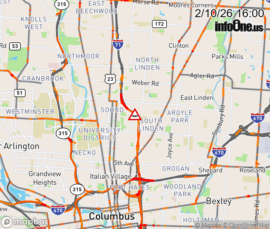 The right shoulder is blocked on I-71 South beyond Hudson St, due to a crash. Updated: Tue 2/10/26 4:00 PM EST ![]() Updated: Tue 2/10/26 4:00 PM EST |