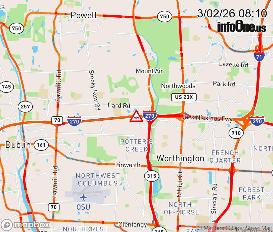 The right shoulder is blocked on I-270 West beyond SR-315 South, due to a disabled vehicle. ![]() |