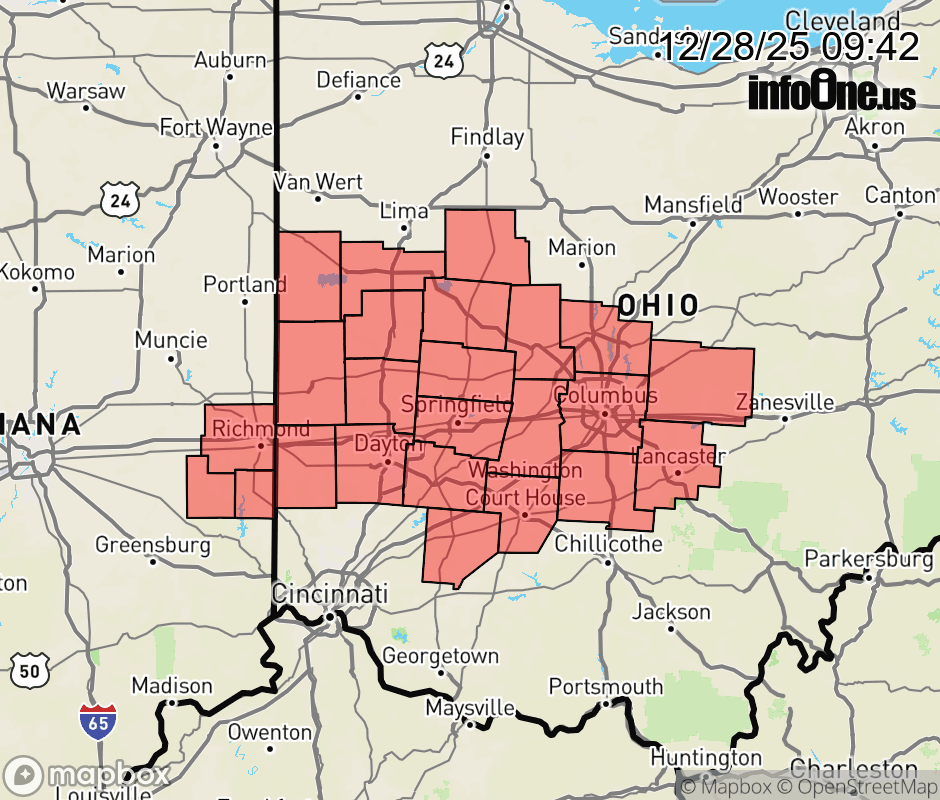 Canceled 12/28/25 2:46 PM Wind Advisory issued December 28 at 9:40AM EST until December 29 at 6:00PM EST by NWS Wilmington OH * WHAT... West winds 20 to 30 mph with gusts up to 50 mph expected. * WHERE... Portions of east central Indiana and central, southwest, and west central Ohio. * WHEN... From 8 PM this evening to 6 PM EST Monday. * IMPACTS... Gusty winds will blow around unsecured objects. Tree limbs could be blown down and a few power outages may result. ![]() |