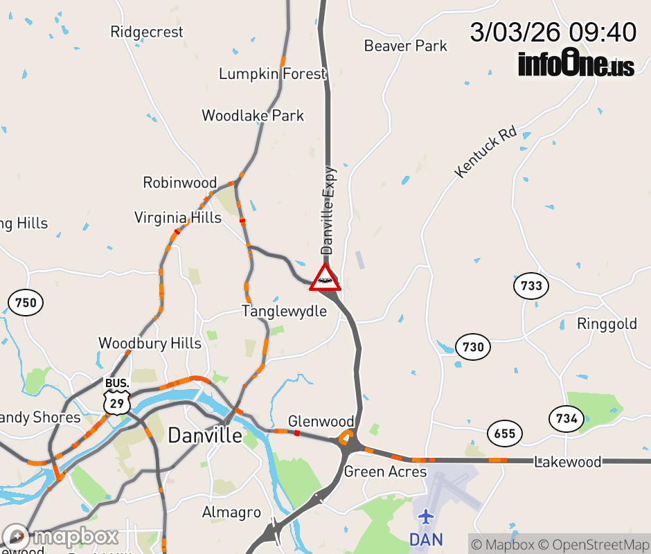 On US-29 in the County of Pittsylvania, in the vicinity of Ramp Intersection, motorists can expect delays due to a vehicle crash. The south right lane and right shoulder are closed. Updated: Tue 3/3/26 9:40 AM EST ![]() Updated: Tue 3/3/26 9:40 AM EST |