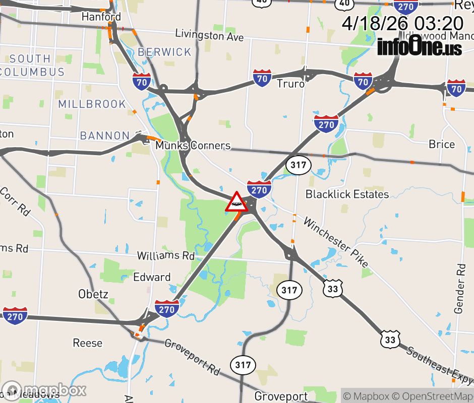 The 2 right lanes are blocked on US-33 East at I-270 South, due to a crash. ![]() |